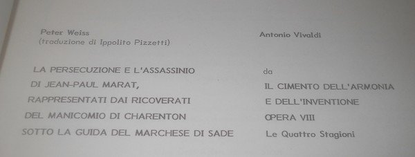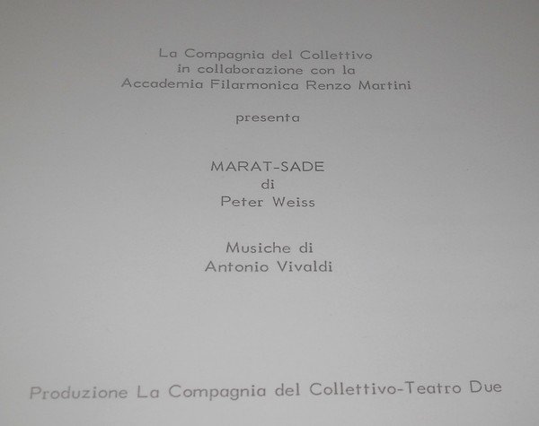 MARAT-SADE. la persecuzione e l'assassinio di Jean Paul Marat rappresentati dai ricoverati del manicomio di Charenton sotto la guida del marchese di Sade