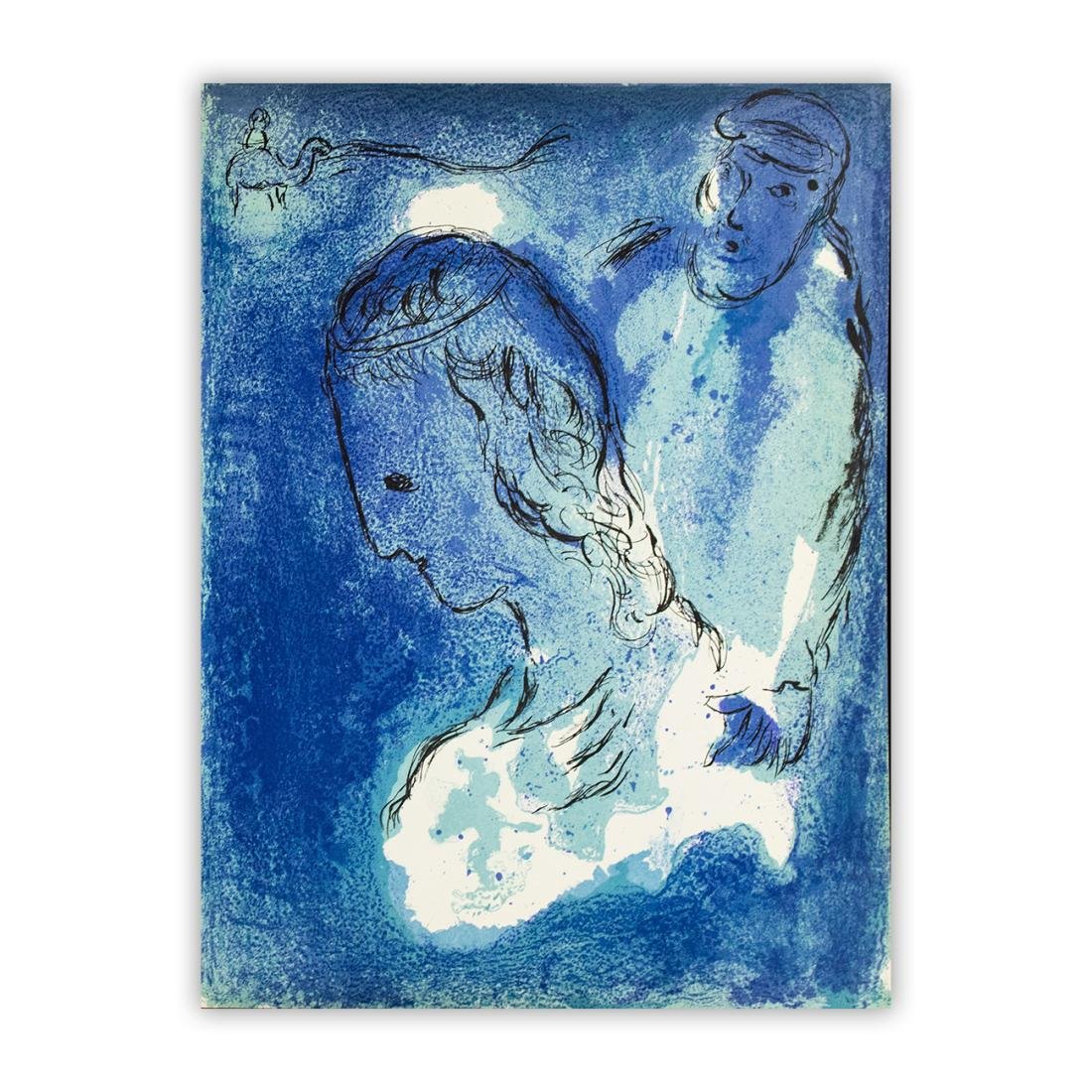 Marc Chagall - Abraham et SaraDimensioni: 35,5x26,2 cm Ce double numéro de VERVEest consacré à la reproduction intégrale en héliogravuredes 105 planches gravées à l'eau-forte par Marc CHAGALL,entre 1930 et 1955, pour l'illustration de la Bible.L'artiste a composé spécialement pour le présent ouvrage16 lithographies en couleurs et 12 en noir,ainsi que la couverture et la page de titre.Ce volume a été achevé d'imprimer le 10 Septembre 1956,par les Maitres-Imprimeuris DRAEGER Frères pour l'héliogravureet par MOURLOT Fréres pour la lithographie. Copyright by VERVE, Paris-France 1956PRINTED IN FRANCEMarc Chagall Bible, Vol. VIII, N. 33 et 34 Note: L'opera viene venduta senza cornice, immagine a scopo dimostrativo.