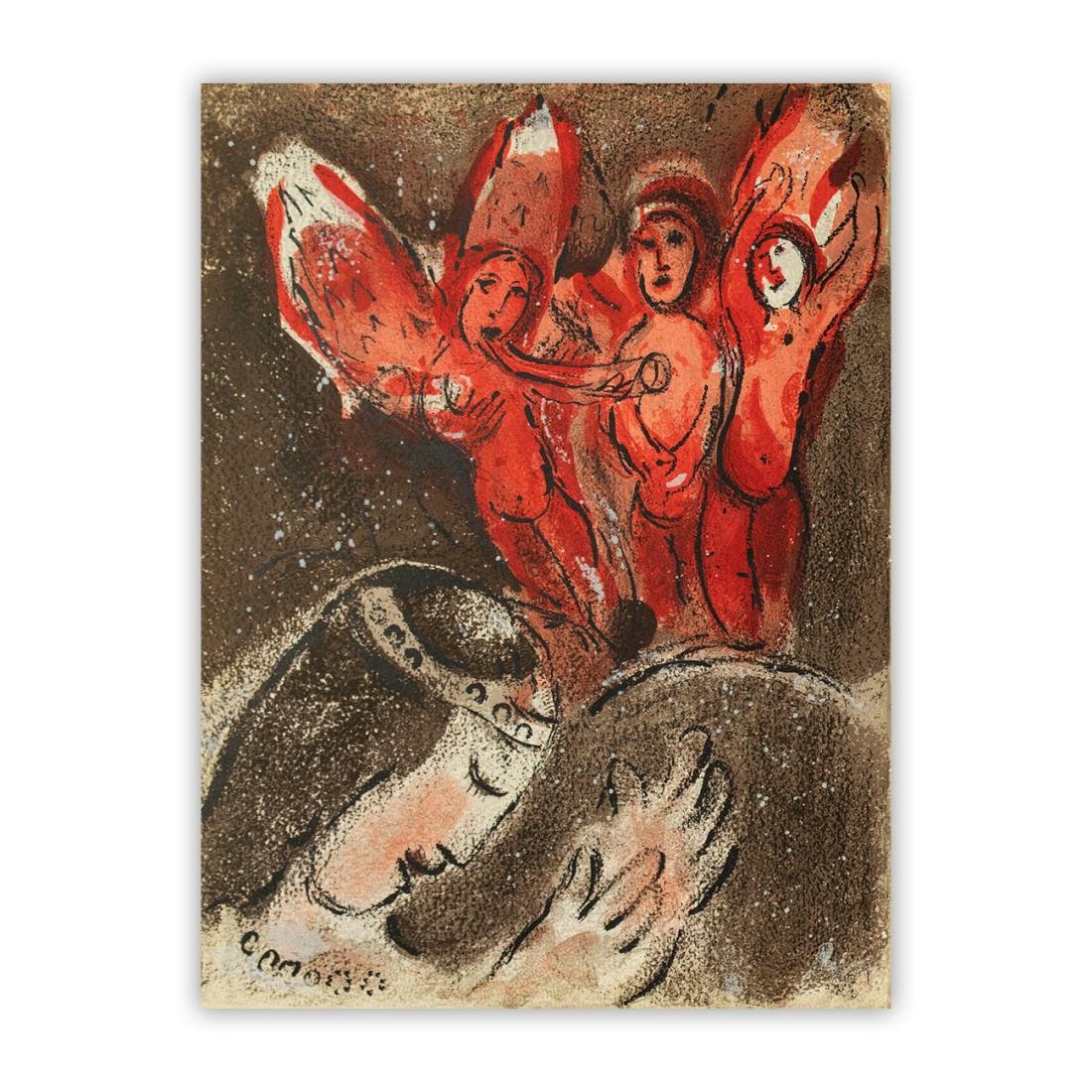 Marc Chagall - Sara et les AngesDimensioni: 35,5x26,2 cm Ce double numéro de VERVEcomprend les dessins que Marc CHAGALLa exécutés en 1958 et 1959 sur des thèmes bibliquesqu'il n'avait en général pas traitésdans son illustration pour la Bible, gravée à l'eau-forteet qui fut reproduite dans le numéro 33/34 de Verve.Cet ouvrage comporte 96 reproductions en noir et 24 lithographies en couleurs ainsi que la converturequi ont été spécialement réalisées pour le présent ouvrage.Il a été achevé d'imprimer le 29 Juillet 1960par DRAEGER Frères pour l'héliogravure en noiret par MOURLOT Frères pour la lithographie en couleurs. © VERVE, Paris - France 1960 - printed in France Note: L'opera viene venduta senza cornice, immagine a scopo dimostrativo.