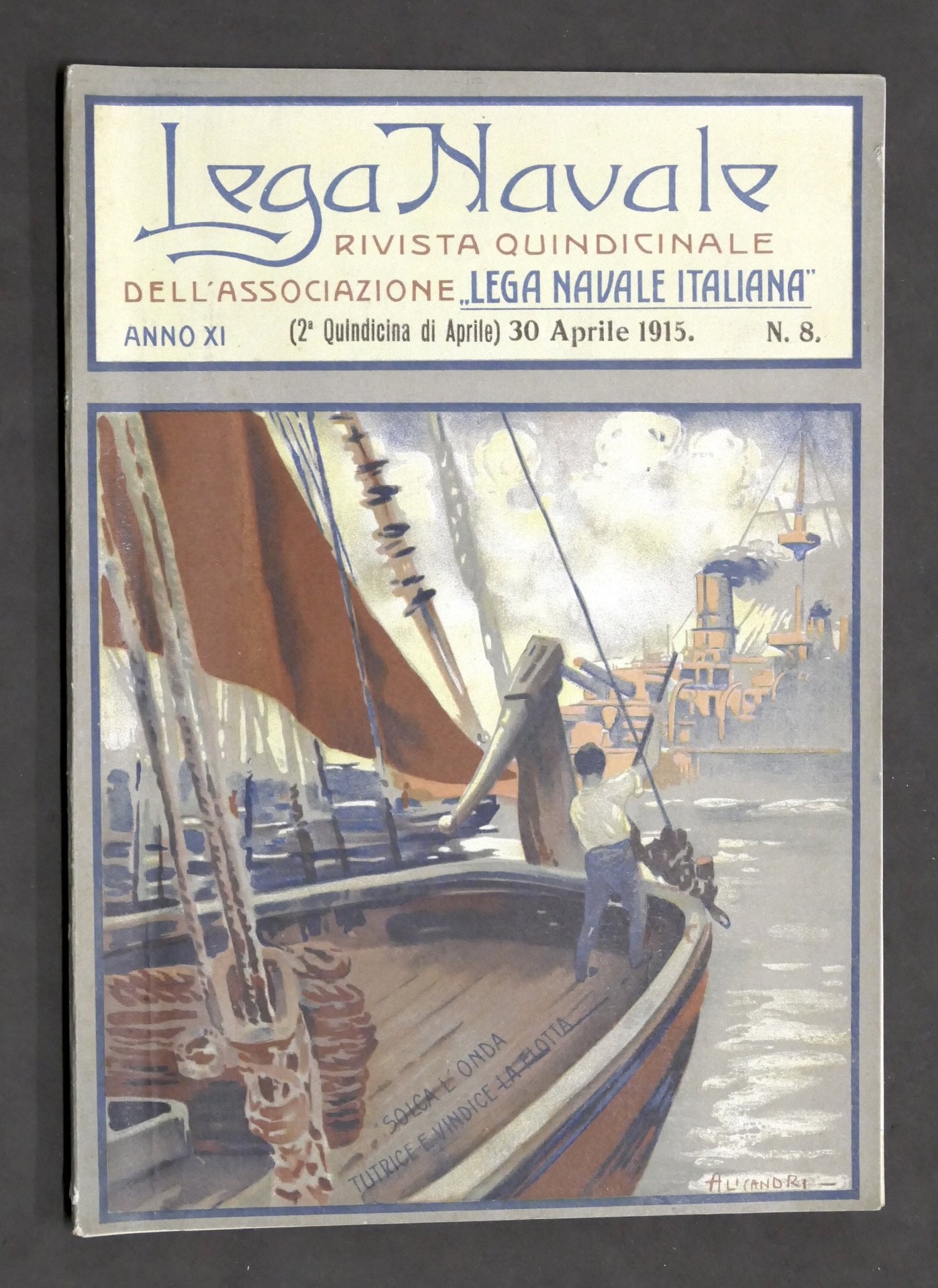 Marina - Lega Navale - Rivista quindicinale dellAssociazione Lega Navale Italiana - Anno XI - N. 8 - 30 aprile 1915 Pag. 284-320 con alcune illustrazioni. Copertina morbida - Testo in italiano. Condizioni molto buone.