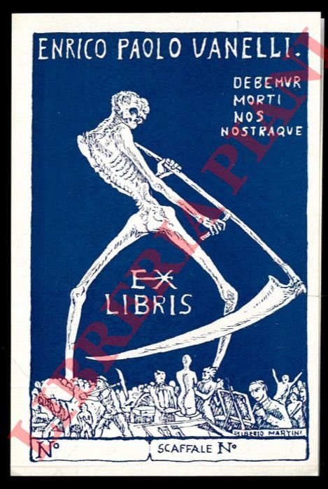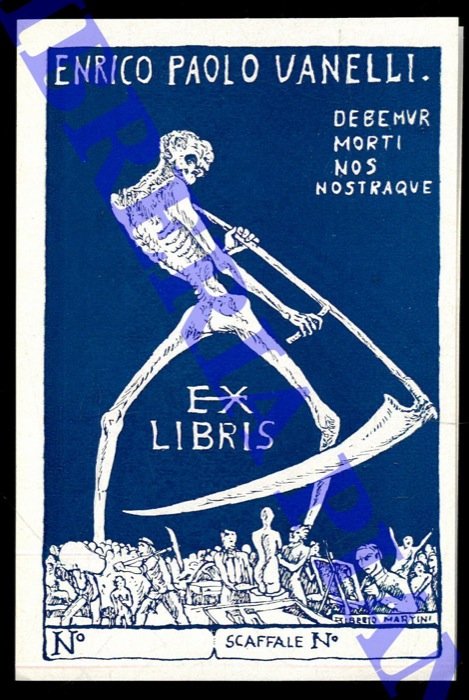 Un foglietto tipografico, per Enrico Paolo Vanelli (Omnia vincit amor), cm. 11,5 x 5, stampato in blu chiaro.