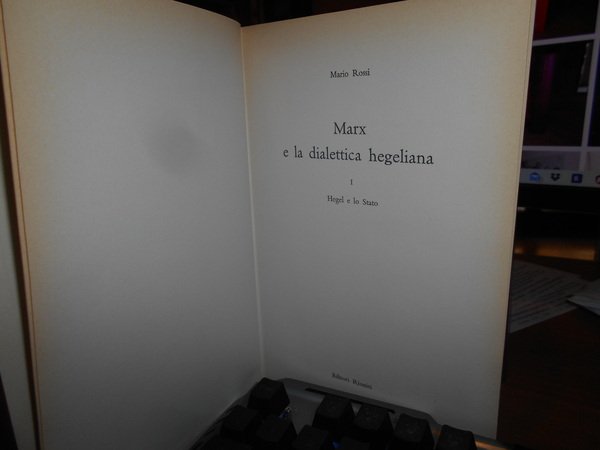 MARIO ROSSI. Roma, Editori Riuniti, 1960. MARX e la dialettica hegeliana. 1. Hegel e lo Stato. In-8°, tela con sovracopertina in aceto. Bordi con leggeri ingiallimenti ma ottimo lo stato di conservazione con sovracopertina in acetato. Uff. stanz. TV mob. nostro a sinistra carc.