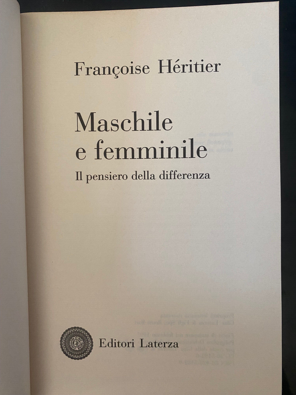 Maschile e femminile. Pensiero della differenza, Francoise Heritier Laterza 1997