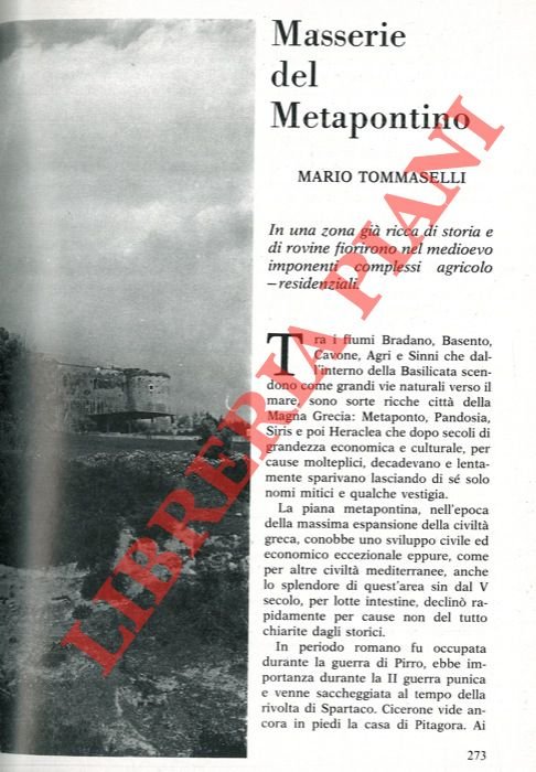 - (Basilicata - Metaponto - Storia locale - Storia territoriale -, Fortificazioni - Masserie castello - Castelli)