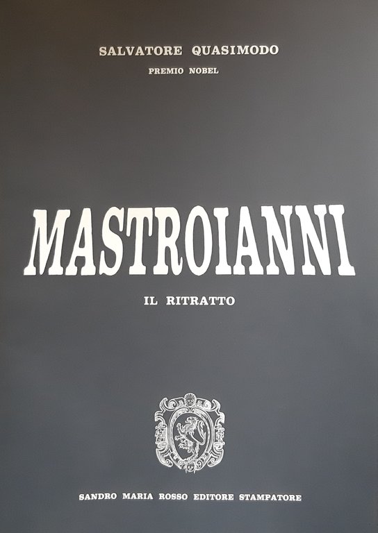 Folio (47,5x33,5) tiratura di 1000 copie numerate (es. n.68 con firma autografa di Mastroianni). Presentazione di Salvatore Quasimodo, riprodotto in facsimile, grande ritratto, 51 tavole a colori e in nero, cofanetto in tela, titolo oro. Ottimo stato tutte le stampe e le pagine, il cofanetto presenta alcuni minimali segni del tempo