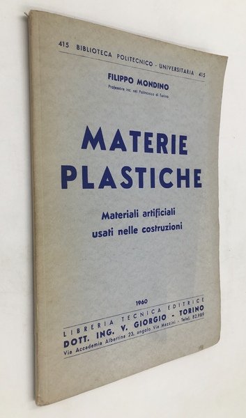 MATERIE PLASTICHE. Materiali ARTIFICIALI usati nelle COSTRUZIONI. [+ Tabelle schematiche delle materie plastiche e delle resine derivanti dal metano e dal petrolio.]. | Rare and modern books | Mondino Filippo