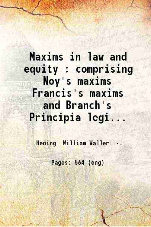 Maxims in law and equity : comprising Noy's maxims Francis's maxims and Branch's Principia legis et Êquitatis with a translation of the Latin maxims and references to modern authorities both British and American / by William Waller Hening. v. 1-3. Volume 1-3 1824