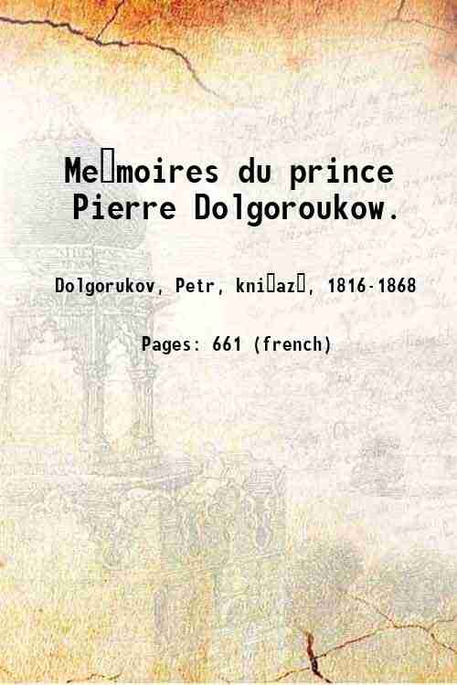 Me?moires du prince Pierre Dolgoroukow. Volume 1 1867