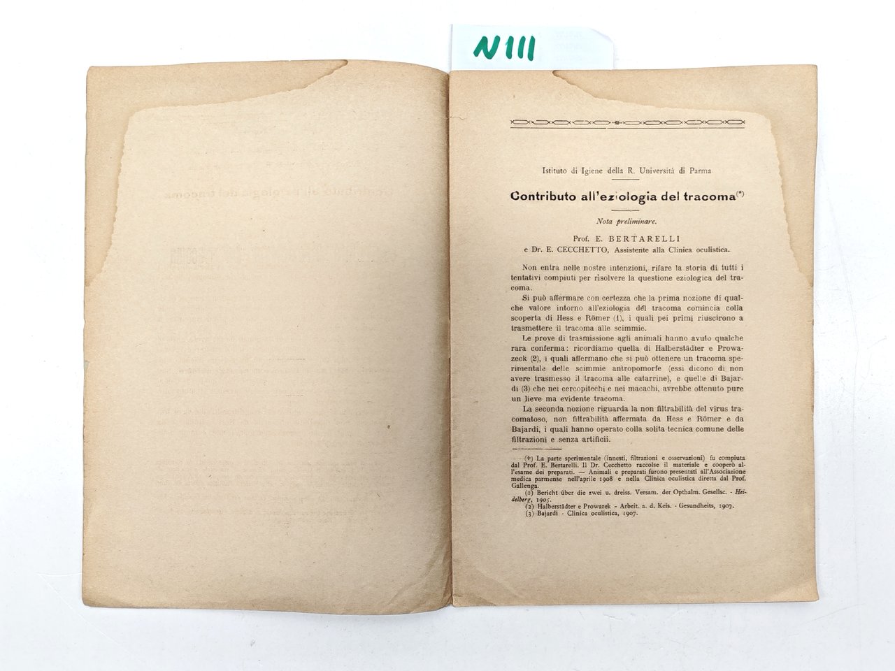 Bertarelli Contributo all’eziologia del tracoma estratto dalla rivista igiene e di sanità pubblica Biella 1908