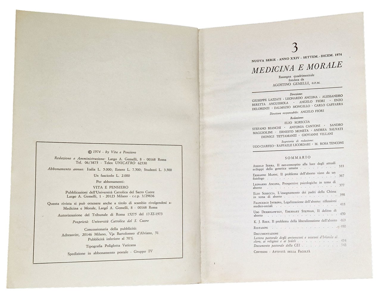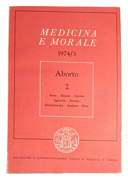 Medicina e morale 1974/3. Aborto 2 | Rare and modern books |