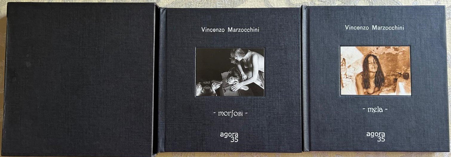 Agora 35, 2003. Cm. 14,5x14, 2 volumi, cartonato editorial, astuccio, pp. 30 circa ogni volume (non numerate), interamente illustrato da fotografie di Vincenzo Marzocchini. Edizione di 80 copie numerate. Dedica autografa del'autore. In ottimo stato.