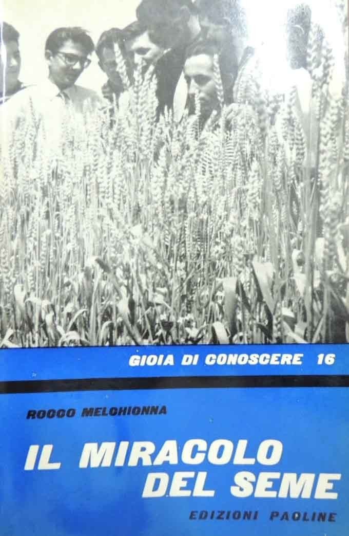 Rocco Melchionna, Il miracolo del seme, Edizioni Paoline, s.l. (ma stampato a Vicenza, presso la Pia Società San Paolo) 1959, pp. 188, 8 c. di tavv. f.t. ill. b.n., cm 19, br. ed. Collana Gioia di conoscere. Collana scientifica per la gioventù, n. 16. Leggere tracce d’uso, minima brunitura della carta, lievi fioriture ai tagli, per il resto buona copia.