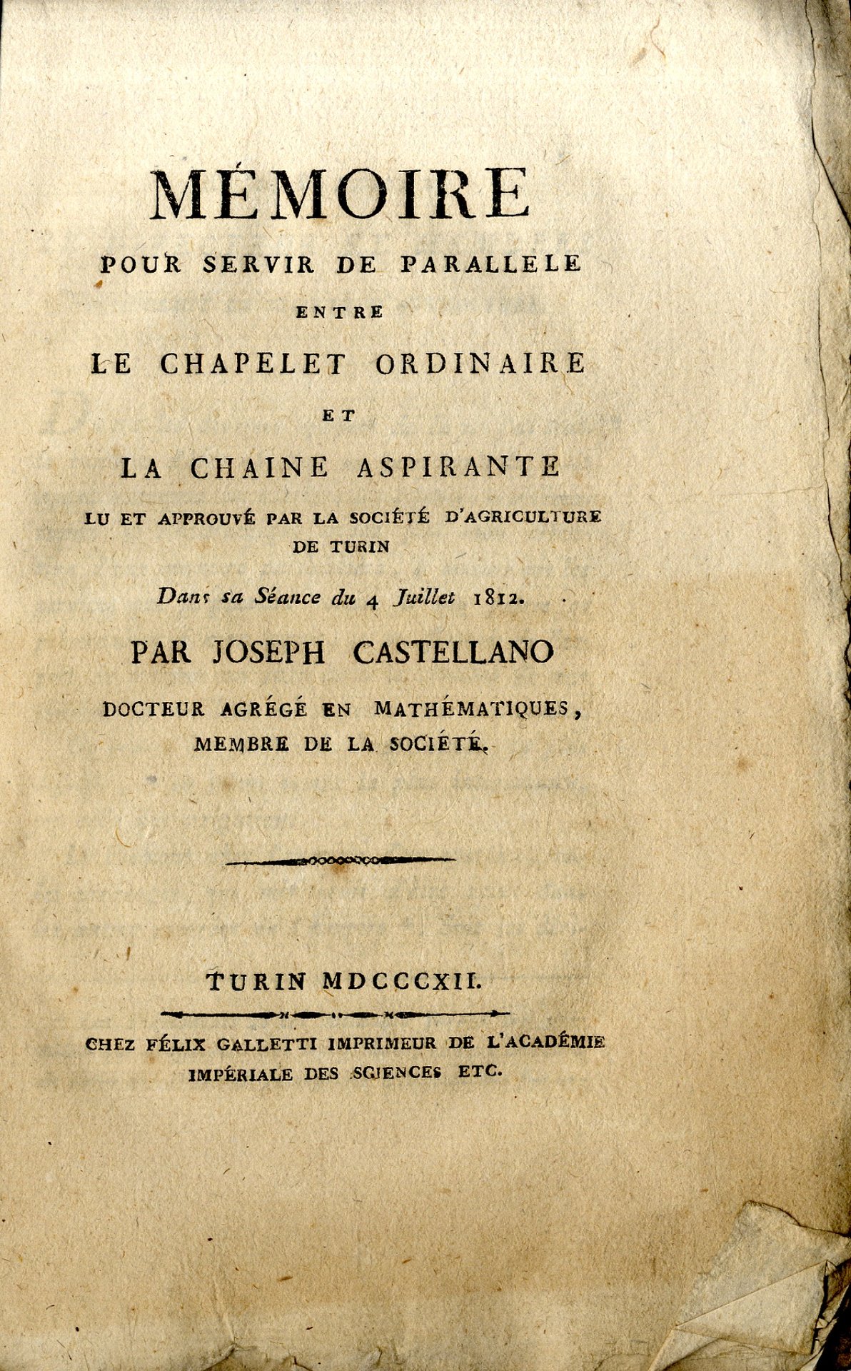 Memoire pour servir de parallele entre le chapelet ordinaire et la chaine aspirante.