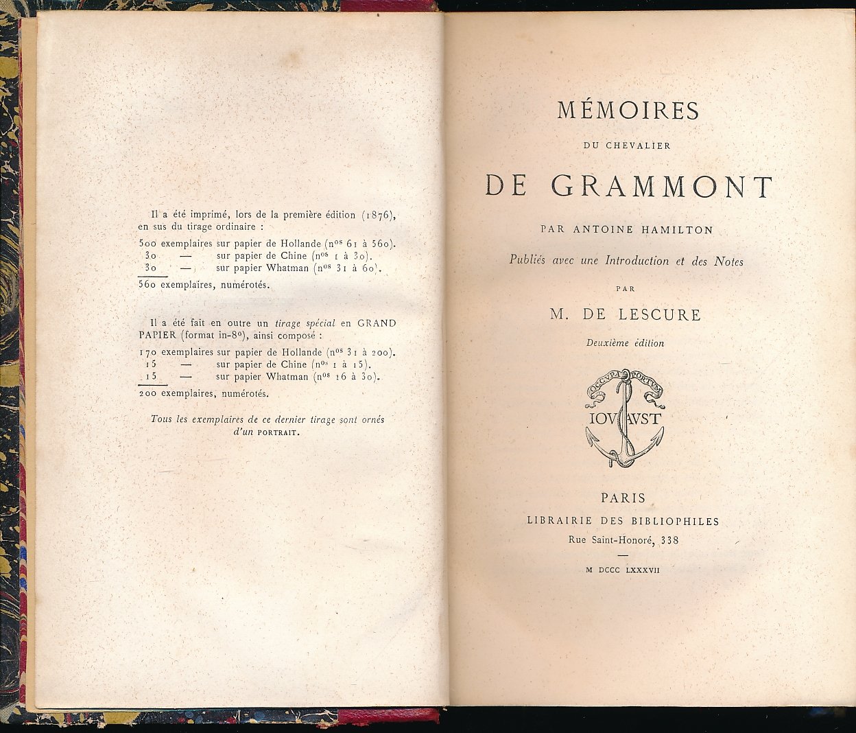 Librairie des bibliophiles 1887 Paris, Librairie des Bibliophiles, 1887. In-12 relié demi-chagrin rouge, dos à nerfs, tête dorée. XIV + 364 pages. Bon exemplaire.
