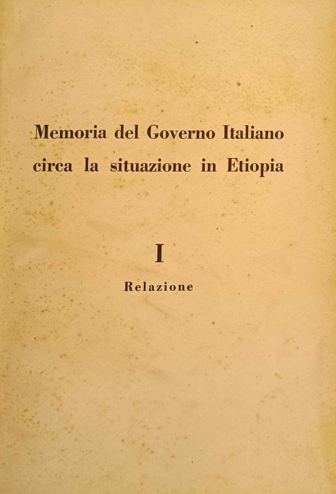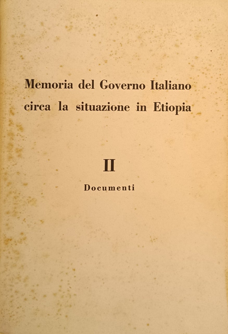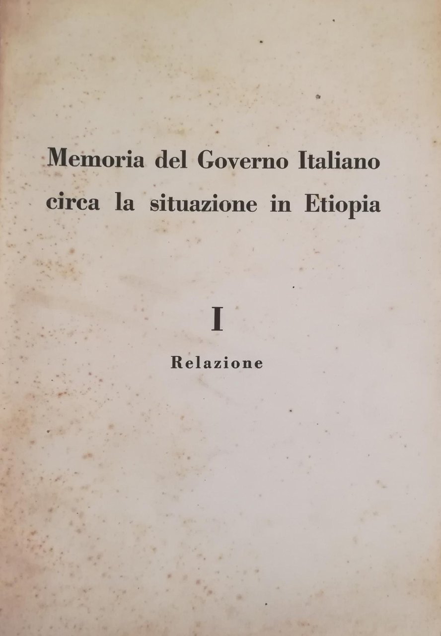 MEMORIA DEL GOVERNO ITALIANO CIRCA LA SITUAZONE IN ETIOPIA