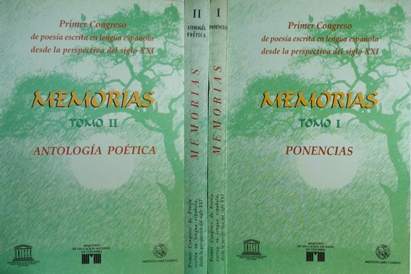 Memorias del Primer Congreso de Poesía Escrita en Lengua Española desde la Perspectiva del Siglo XXI. [Santafé de Bogotá, 26 al 29 de Marzo de 1996]. Edición dirigida por Pedro Sarmiento Sandoval. [Tomo I: Ponencias. Tomo II: Antología Poética].