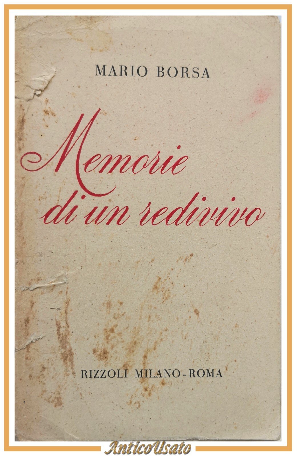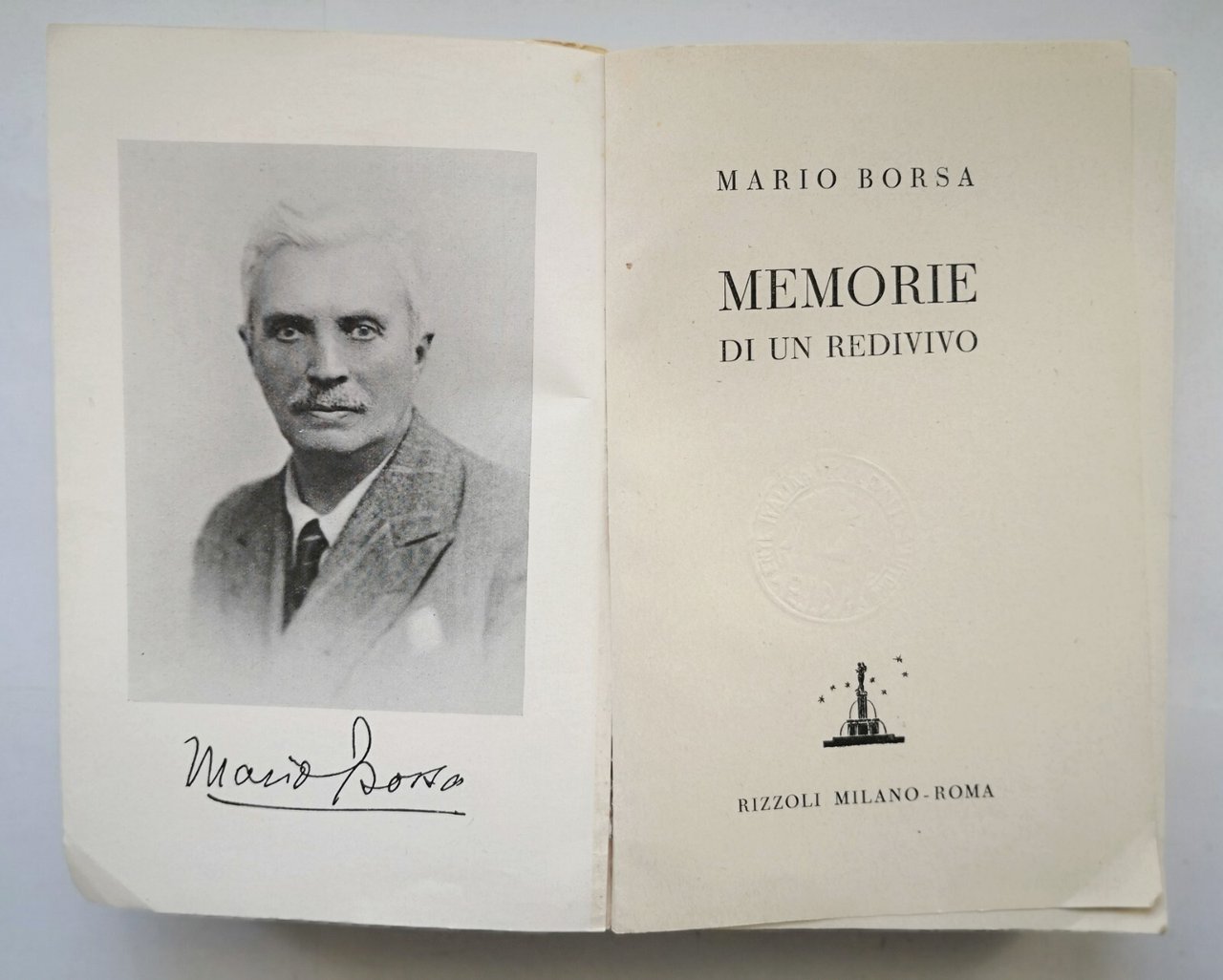 MEMORIE DI UN REDIVIVO Mario Borsa 1945 Rizzoli Libro Romanzo I edizione