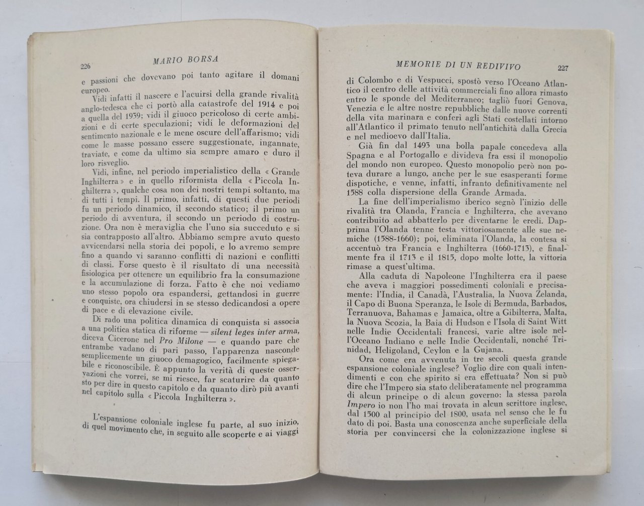 MEMORIE DI UN REDIVIVO di Mario Borsa.
