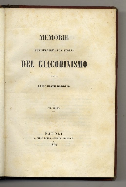 Memorie per servire alla storia del giacobinismo. [.] Volume primo [- volume secondo].