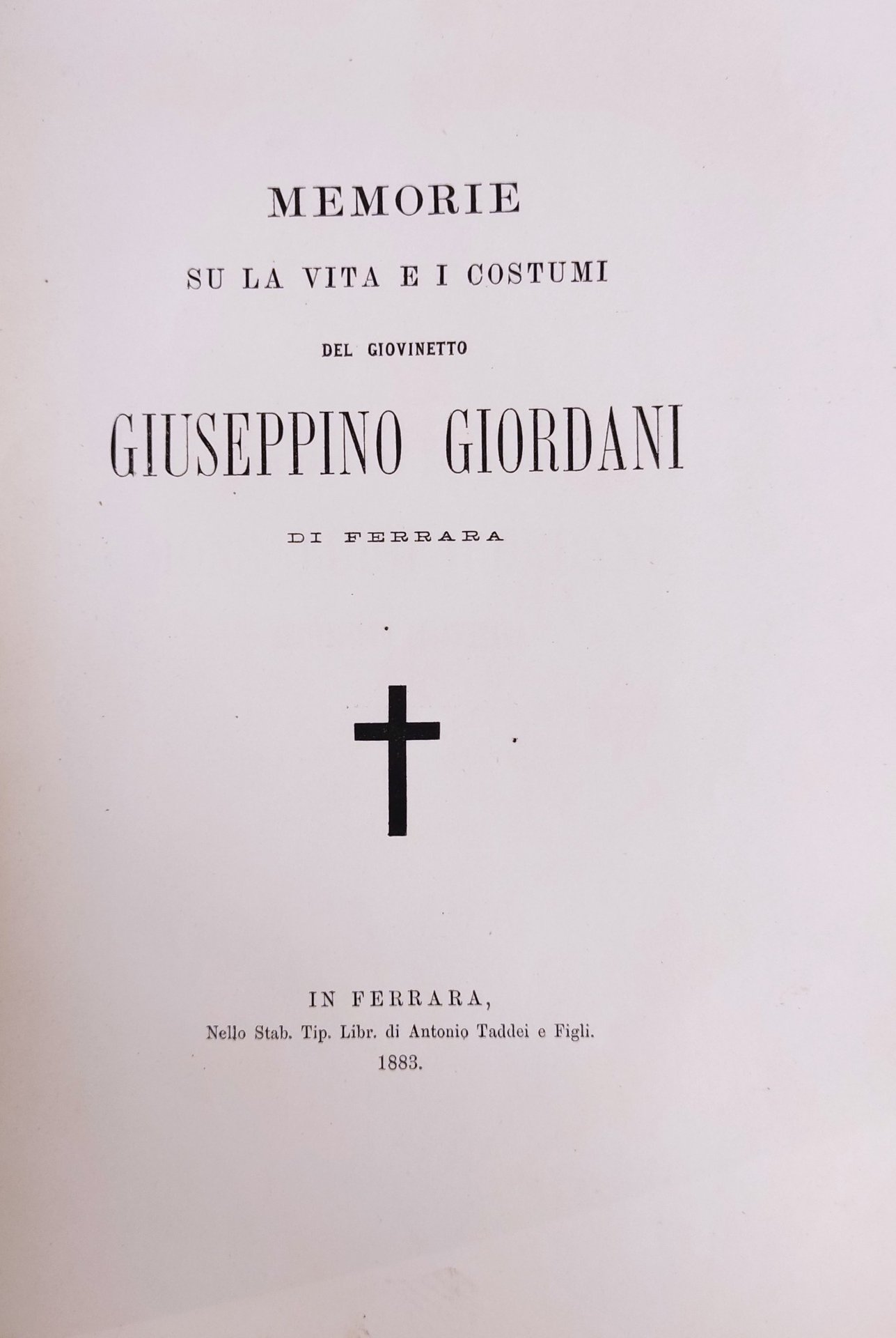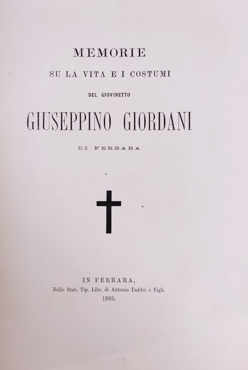 MEMORIE SU LA VITA E I COSTUMI DEL GIOVINETTO GIUSEPPINO GIORDANI