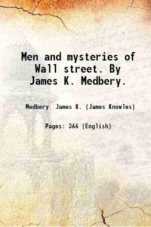 Men and mysteries of Wall street. By James K. Medbery. 1870