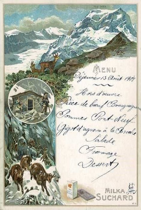 Menu Dejeuner 13 Aout 1908. | Rare and modern books | [Menu Originale Manoscritto D'Epoca - Milka Suchard]