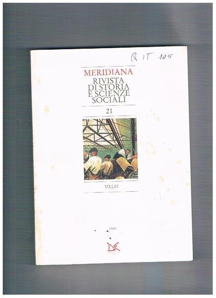 Meridiana, rivista quadrimestrale dell'istituto di storia meridionale e scienze sociali. N° 21 sett. 1994 Melfi. La fabbrica di Melfi.; da Torino a Melfi; la fabbrica integrata; la fabbrica fluida; ecc.