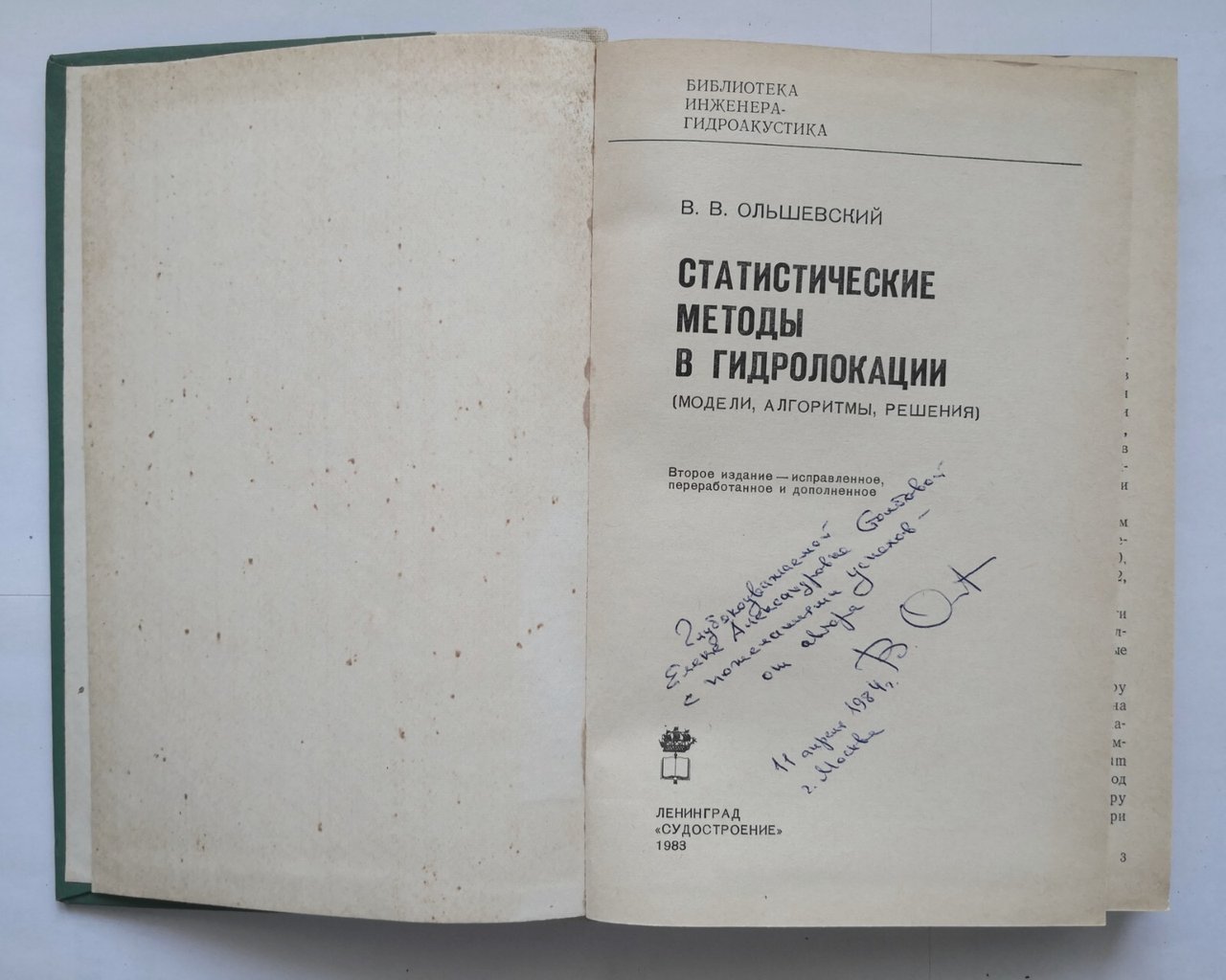 METODI STATISTICI NEL SONAR (Статистические методы в гидролокации) di V.V. Olshevskij. Modelli, algoritmi, soluzioni.