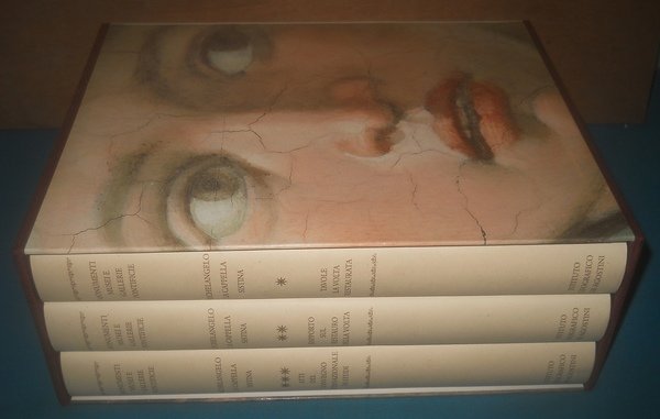 De Agostini, 1994 - 3 Volumi - vol. 1 Tavole. la Volta Restaurata; vol. 2 Rapporto sul Restauro della Volta; vol. 3 Atti del Convegno); pagine 1025, formato cm. 24 x 34 , copertina rigida e sovracopertina, cofanetto - quasi come nuovi