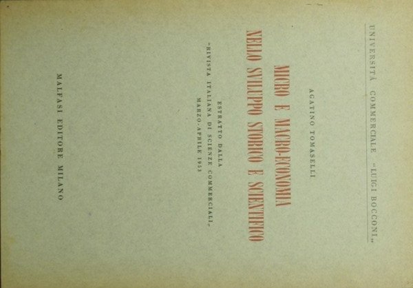 Micro e macro-economia nello sviluppo storico e scientifico | Rare and modern books | Tomaselli Agatino