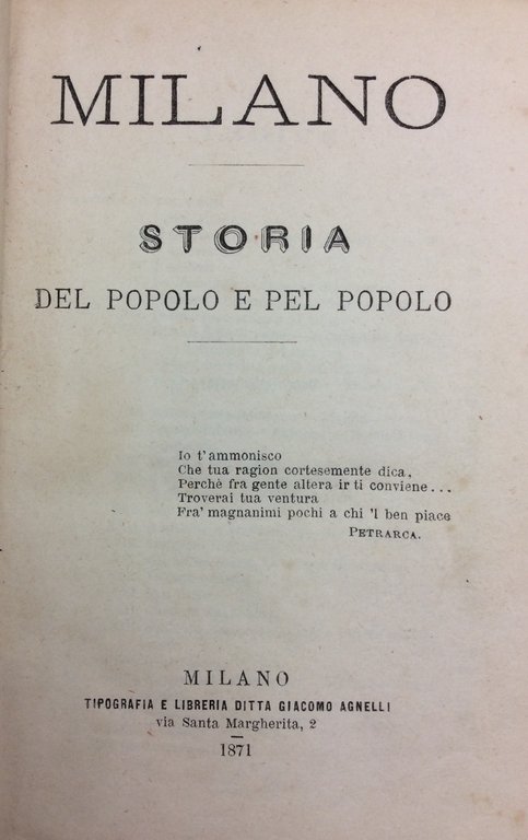 MILANO. STORIA DEL POPOLO E PEL POPOLO.