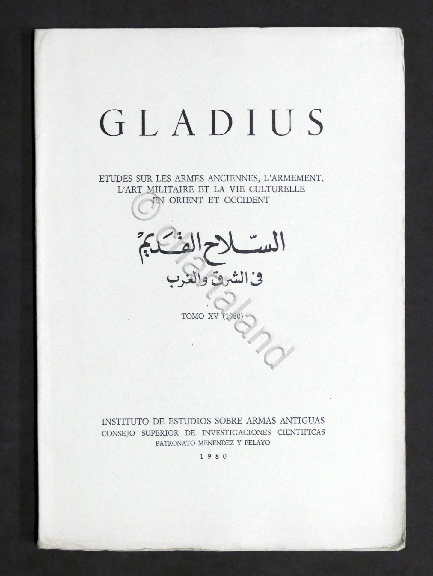 Militaria - Armi antiche - Arte Militare Gladius - Etudes sur les armes anciennes, l'armement, l’art militare et la vie culturelle en orient et occident - Tomo XV Instituto de Estudios Sobre Armas Antiguas - 1^ ed. 1980 Pag. 163 con illustrazioni. Copertina morbida - Testo multilingue. Condizioni molto buone.