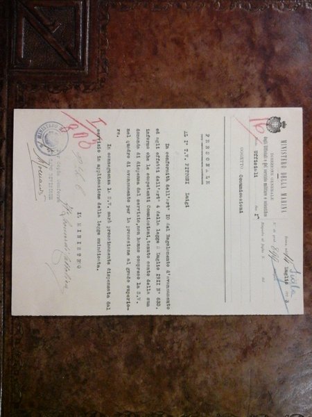 Ministero della marina. Comunicazione firmata dal Ministro della Marina Leonardi Cattolica