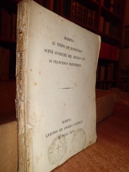 Manfredini, Francesco. Modena, Antonio ed Angelo Cappelli, 1846. In - 16°, br. cop. muta. 146, (2) pp. Timbri di antica biblioteca monastica alla base del frontespizio. Manca al Lozzi e alla Bibl. Platneriana. In buono stato di conservazione. Neg. Mob. 7