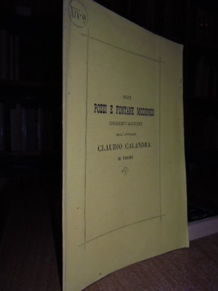 (Modena) Sui pozzi e fontane modenesi, osservazioni. CALANDRA, Claudio. Modena, Andrea Rossi, 1874. In-8°, br., cop. orig. 19, (1) pp. Interessante opuscolo in ottimo stato di conservazione. Neg. Mob. 3