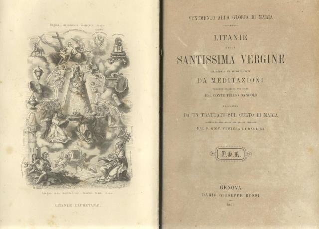 MOMENTO ALLA GLORIA DI MARIA. Litanie della Santissima Vergine illustrate ed accompagnate da meditazioni. Versione italiana per cura del conte Tullio Dandolo, precedute da un Trattato sul culto di Maria scritto espressamente per questa edizione dal P. Giovanni Ventura di Raulica.