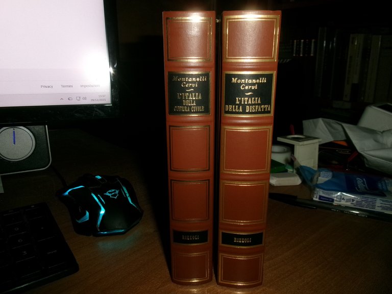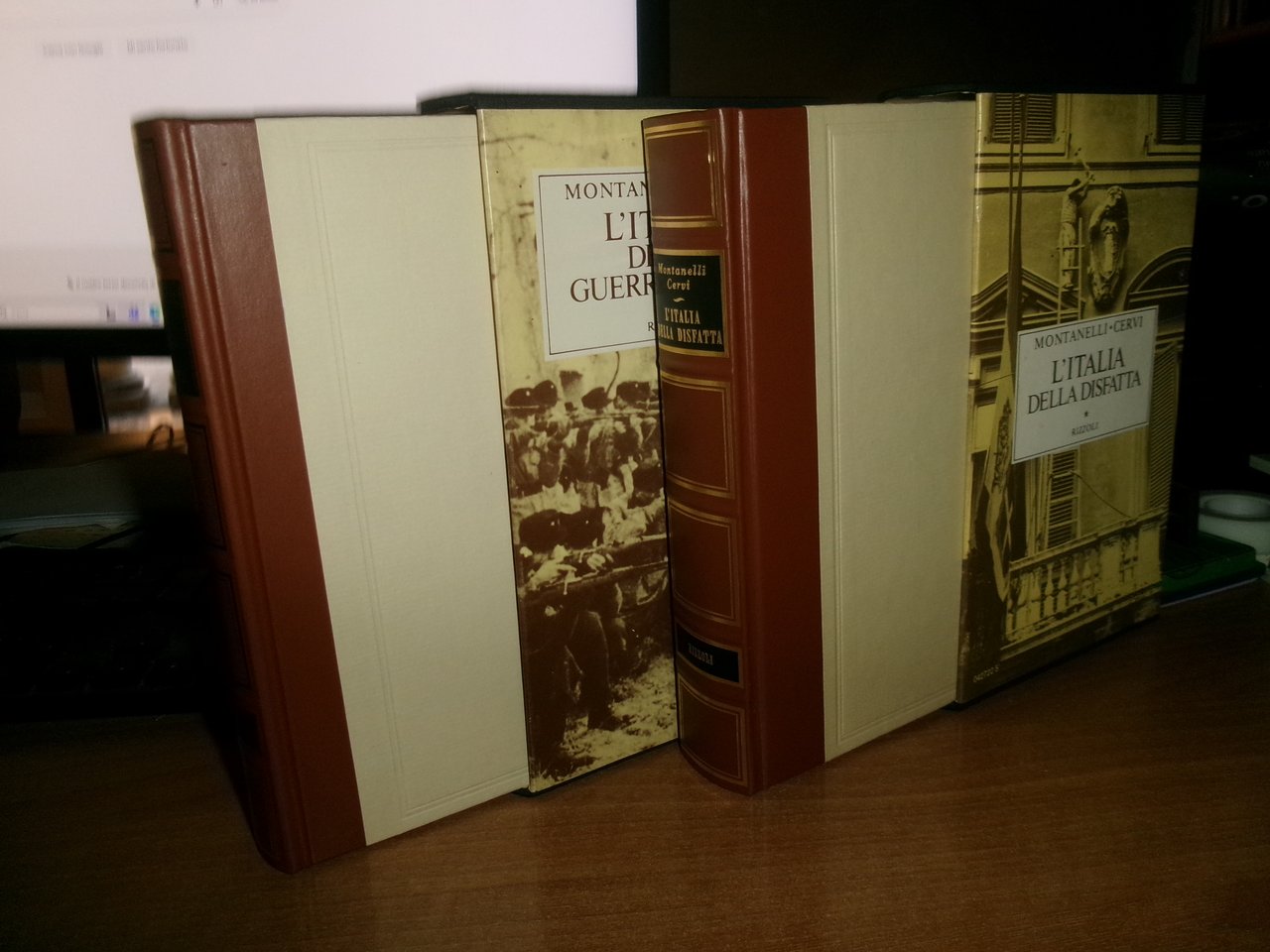 MONTANELLI - CERVI. L' Italia della guerra civile/L' Italia della disfatta. Milano, Rizzoli, 1982/1983. 2 volumi in-16° grande, m-similpelle con fregi e titoli in oro sui dorsi. 413, (3) pp. con 8 cartine n.t. ; 461 pp. co 14 cartine e ritratti n.t. Come nuovi in cofanetti. Uff. C - III - 1 - 2
