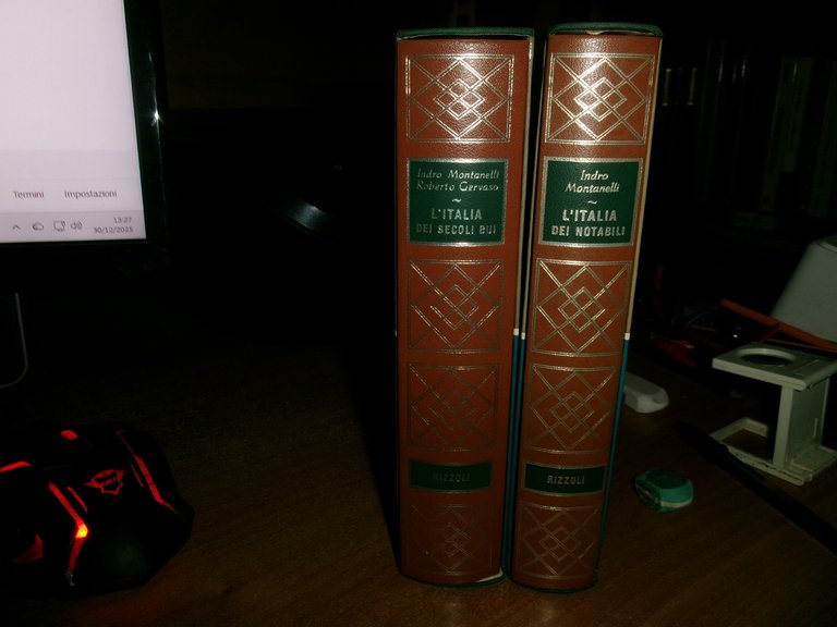 MONTANELLI - GERVASO. L' Italia dei secoli bui. L' Italia dei notabili. Milano, Rizzoli, 1970/1973. 2 volumi in-16° grande, similpelle edit. con fregi e titoli in oro sui dorsi. 524 pp.con alcune cartine e illustrazioni n.t.; 455 pp. Come nuovi in cofanetti. Uff. C - III - 1 - 2
