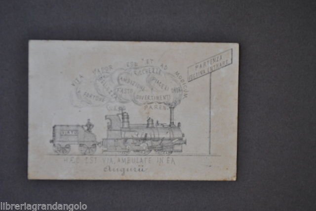 Vedere la descrizione dettagliata Biglietto Orario per i Viaggiatori verso il Paradiso" Biglietto a stampa, illustrato in b.n. sul recto, senza dati tipografici, ma fine 1800. Curioso biglietto per i viaggi in Paradiso. Dimensioni: 9x6 cm. Condizioni di conservazione Esemplare in buono stato con minimi segni del tempo e d'uso. Minime abrasioni. Curioso biglietto moralistico su come assicurarsi il viaggio in paradiso. Per altri volumi e documenti su questo e altri argomenti visitate il nostro negozio "Libreria Grandangolo" Data l'importanza delle 5 stelle rilasciate durante l'assegnazione del feedback, invitiamo tutti gli acqirenti, se soddisfatti del loro acquisto, a rilasciare tutte le 5 stelle. La mancanza anche solo di una stella illuminata è molto lesiva per noi venditori professionali. Grazie! CONDIZIONI DI VENDITA Spedizione Fino a 5 kg piego di libri raccomandato, oltre i 5 kg pacco postale. Si ricorda che l'imballo viene eseguito con la massima cura. La merce viene spedita a pagamento avvenuto e viaggia a rischio e pericolo dell'acquirente. Per maggiori informazioni vedi la pagina SPEDIZIONI del nostro negozio. Ritiro diretto Siamo disponibili per il ritiro diretto a Modena e a Milano. Per gli indirizzi delle sedi vedi la pagina DOVE SIAMO del nostro negozio. Acquisti multipli Se si acquistano più libri, la spedizione si paga una sola volta, purché si rispettino gli scaglioni di peso. Estero / Foreign For international shipment, please contact us. Metodo di pagamento Pay Pal, bonifico bancario, versamento postale (cc/p, vaglia o altro). La spedizione avverrà entro i primi 4 giorni lavorativi dopo la conferma di avvenuto pagamento. Si emette ricevuta fiscale e a richiesta fattura. Il pagamento deve essere effettuato entro 7 giorni lavorativi dalla data di acquisto, trascorsi i quali l'oggetto sarà rimesso in vendita. Feedback Viene rilasciato dall'acquirente dopo il ricevimento di quanto acquistato. Data la sua importanza, vi invitiamo a leggere il breve testo della pagina FEEDBACK del nostro negozio. Pertanto, in caso di qualsiasi problema, non esitate a contattarci. Diritto di recesso L'acquirente ha il diritto di restituire l'oggetto entro 14 giorni ed essere rimborsato, escluse le spese di porto e imballo. L'oggetto deve essere restituito, dopo previa comunicazione, imballato e nelle medesime condizioni di come era all'origine. Creato da Turbo Lister Strumento gratuito per mettere in vendita i tuoi oggetti. Metti in vendita i tuoi oggetti in modo facile e veloce e gestisci le inserzioni in corso. "