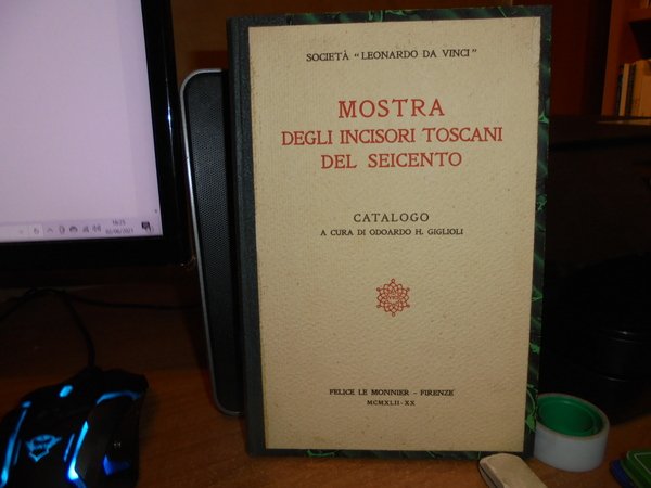 A cura di Odoardo H. Giglioli. Firenze, Felice Le Monnier, 1942. MOSTRA degli incisori toscani del seicento. In-8° piccolo, m. tela con titolo in oro sul dorso. 67 pp. con 47 tavole fuori testo. Edizione numerata (n°0358). Ottimo esemplare. Neg. arte mob. 17