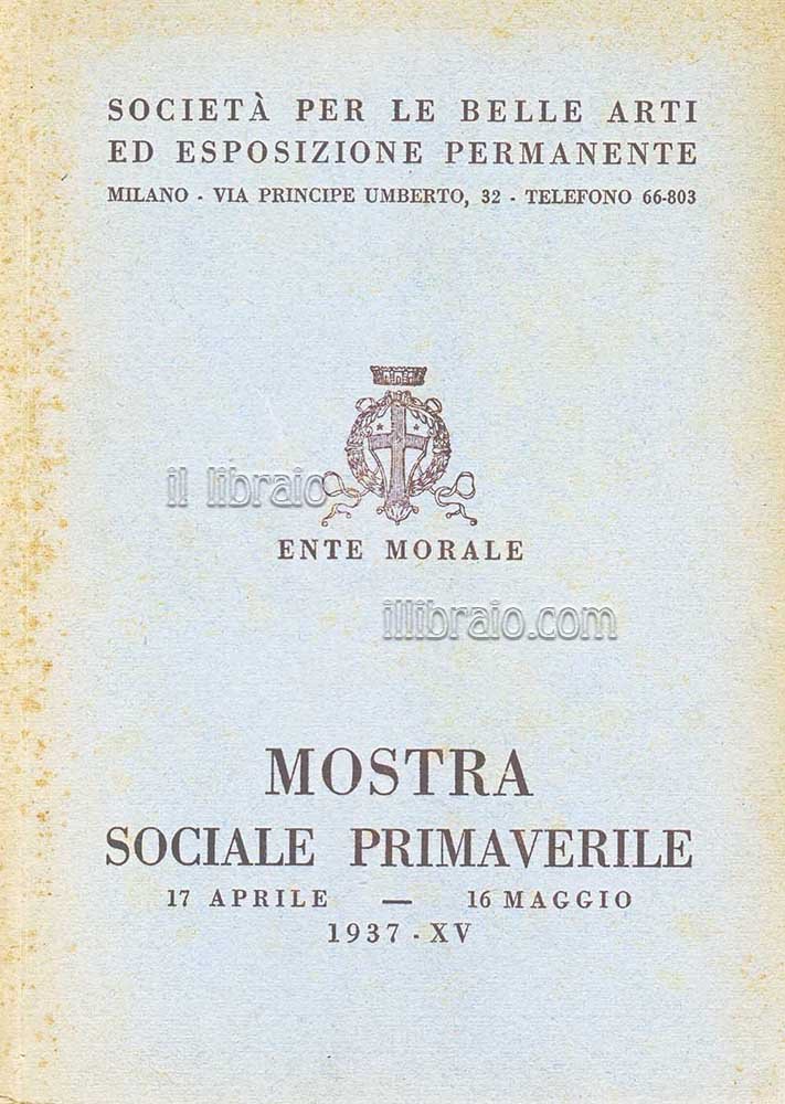 in 16°; pp. 96 + 62 tavv. (ill. in bn.); br. Catalogo della mostra di Milano, Società per le Belle Arti ed Esposizione Permanente (aprile - maggio 1937). Opere di: Agazzi, Bazzaro, Breveglieri, Bucci, M. Cascella, Castelbarco, Cisari, Dudreville, De Strobel, Vellani Marchi, Frisia, A. Mazza e molti altri. Un testo di Gustavo Botta per la mostra postuma di Romolo del Bò da Pavia e di Giuseppe Cerrina per la mostra postuma di Clemente Pugliese-Levi da Vercelli. (leggere arrossature sulla copertina, internamente ottimo)