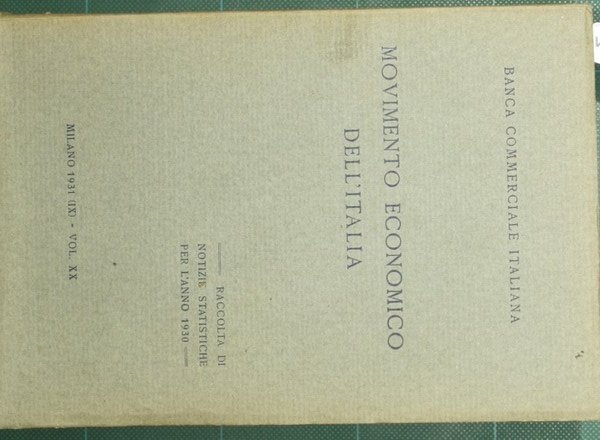 Movimento economico dell'Italia. Vol. XX | Rare and modern books | Banca Commerciale Italiana