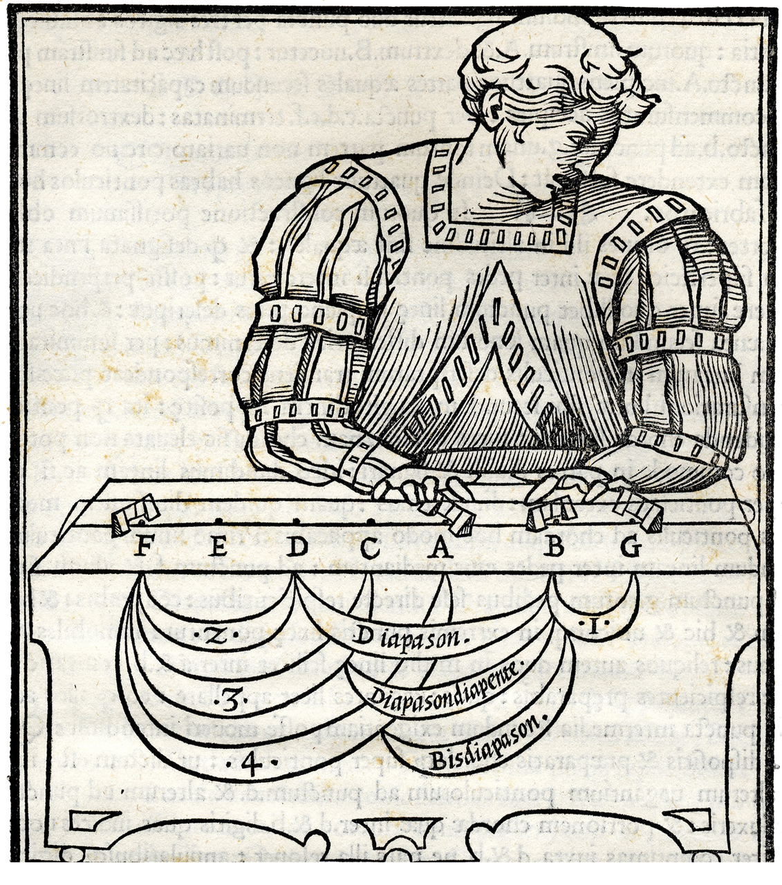 >in-folio piccolo (280x200 mm), ff. (2), XLIII, 1 bianco, leg. inizio 800 piena pergamena, con riquadri in oro ai piatti, titolo impresso su quello anteriore, dorso a nervi con fregi e tit. oro. Prima ed unica edizione di uno dei più eleganti libri di musica di ogni epoca, supendamente illustrato da 70 silografie su mezza pag., raffiguranti suonatori di strumenti a tastiera, in eleganti abiti cinquecenteschi, e grafici di teoria musicale. Il Fogliano, fratello dell'organista Giacomo, nato a Modena sul finire del XV sec., fu nel 1513-14 cantore della Cappella Giulia in San Pietro, e poi a Modena al servizio del Cardinale d'Este. Nel suo trattato sono esposti e dimostrati i principi armonici, ripresi poi dallo Zarlino, ''allo scopo di conciliare fra loro tutti gli elementi che verso la fine del XVII secolo e l'inizio del XVIII dovevano concorrere alla formazione del temperamento equabile. Abbandonando le teorie pitagoriche, restaurò il metodo aristotelico di ricerca per lo studio dei fenomeni del suono e dell'udito'' (Encicl. d Musica III, 8). L'opera è di grande rilievo per gli indirizzi opposti a quelli dominanti nella teoria del primo Rinascimento di matrice pitagorica e neoplatonica: Fogliano adotta invece il modello aristotelico e propone l'intonazione sul comma sintonico di Tolomeo. Il teorico modenese era celebre ai tempi suoi anche per la vasta cultura filosofica.