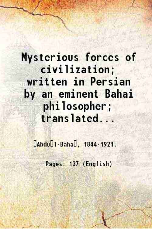 Mysterious forces of civilization; written in Persian by an eminent Bahai philosopher; translated by Johanna Dawud. 1918