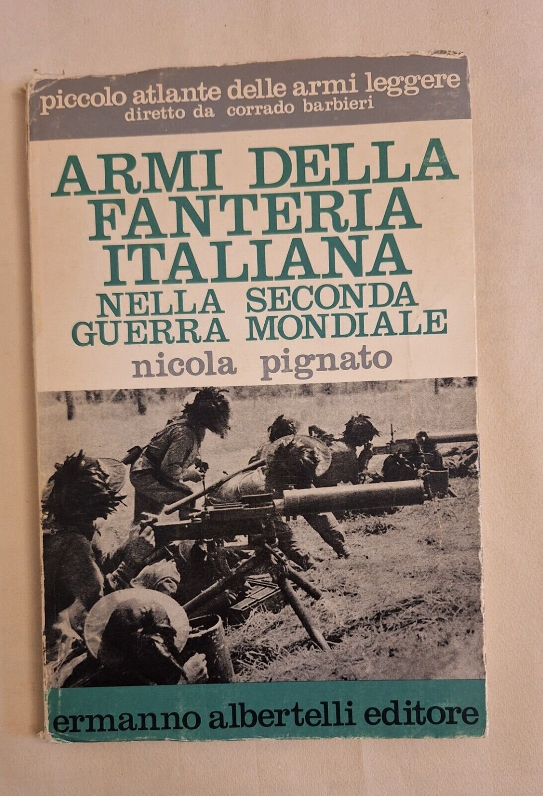 N. PIGNATO ARMI DELLA FANTERIA ITALIANA NELLA 2° GUERRA MONDIALE ALBERTELLI 1971In 8°, legatura editoriale, copertina illustrata, ill. in b/n.Lievissimi segni alla copertina.