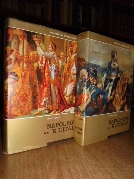 André, Fugier. Roma, Biblioteca di Storia Patria, 1970. NAPOLEONE e l' Italia. Introduzione, traduzione e aggiunte a cura di Raffaele Ciampini. 2 volumi in tela rossa con titoli in oro sui dorsi e sovracopertine. 310 pp. con 96 tavole fuori testo; 351 pp. con 64 tavole fuori testo. In ottimo stato di conservazione. Neg. in alto sopra mob. 5.