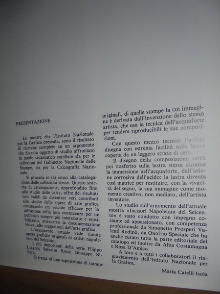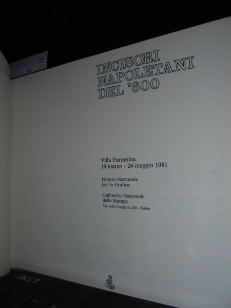 (Napoli) Presentazione Maria Catelli Isola. Roma, Multigrafica Editrice, 1981. Incisori napoletani del '600. Villa Farnesina 19 Marzo - 24 Maggio 1981. In-8° oblungo, cartoncino edit. 213 pp. con 196 illustrazioni n.t. Esemplare come nuovo. Neg. arte mob. 11