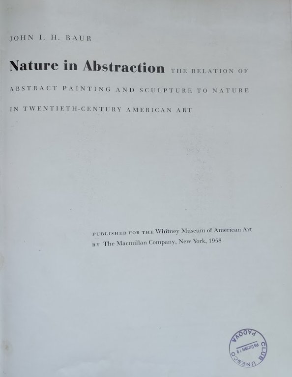 NATURE IN ABSTRACTION. THE RELATION OF ABSTRACT PAINTING AND SCULPTURE TO NATURE IN TWENTIETH-CENTURY AMERICAN ART