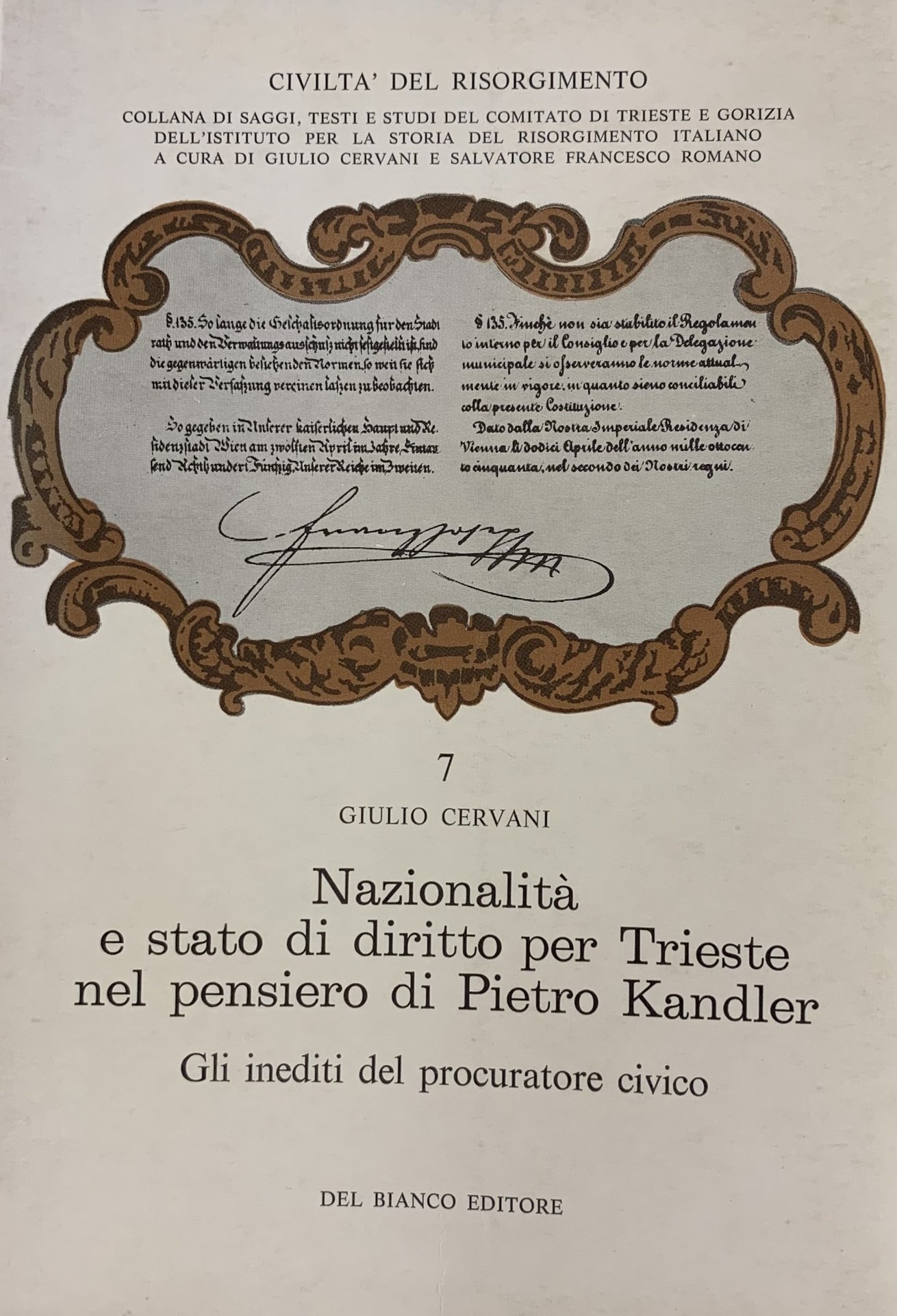 NAZIONALITÀ E STATO DI DIRITTO PER TRIESTE NEL PENSIERO DI PIETRO KANDLER. GLI INEDITI DEL PROCURATORE CIVICO