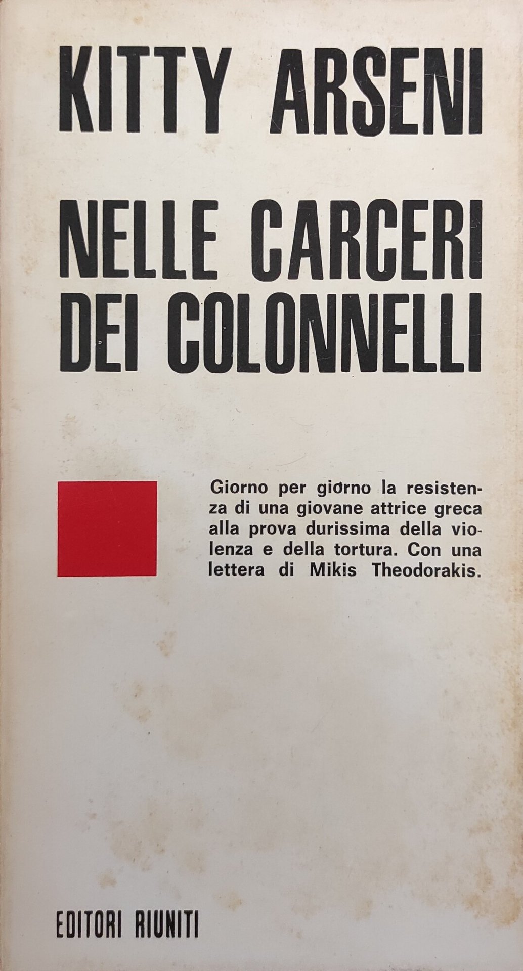 Giorno per giorno la resistenza di una giovane attrice greca alla prova durissima della violenza e della tortura. Con una lettera di Mikis Theodorakis. in ottavo leg. bross. pp. 120 Buono (Good) Buon es. ma con segni del tempo.